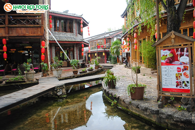 Nằm dưới chân núi Ngọc Long quanh năm được bao phủ bởi tuyết trắng xóa, cho nên ở đây không có tường thành bao quanh như những cổ trấn khác. Nơi đây nổi tiếng với hệ thống đường thủy và những cây cầu nổi tiếng, nên còn được biết đến với tên gọi Venice của phương Đông. Chỉ riêng dòng sông Ngọc Hà trong nội thành Lệ Giang cũng đã có hàng trăm cây cầu bắt ngang qua. Du lịch Lệ Giang cổ trấn, du khách có thể tận hưởng cảm giác lênh đênh trên chiếc thuyền nhỏ, len lỏi qua những ngóc ngách phố phường không kém gì ở Venice.