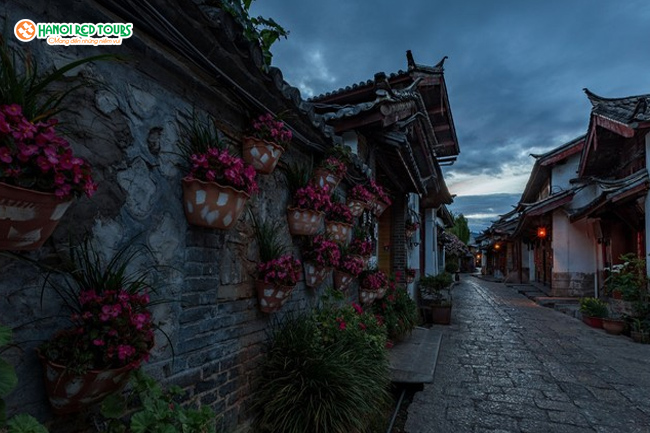 Phố xá trong thành Lệ Giang gắn liền với sông núi, hoa cỏ miên man nâng bước chân du khách. Những hoa văn trên nền gạch, một cách tự nhiên hòa hợp cùng với môi trường của thành phố này. Ở đây, dường như mọi thứ cứ hòa quyện vào nhau, không một chút sắp đặt, nhu tự bản thân chúng, từ khi xuất hiện đã như vậy. Ở đây, dẫu cho kiến trúc có mang dậm sự cổ kính, thì vẫn đầy ắp sự tươi mát của thiên nhiên và hoa cỏ khắp nơi.