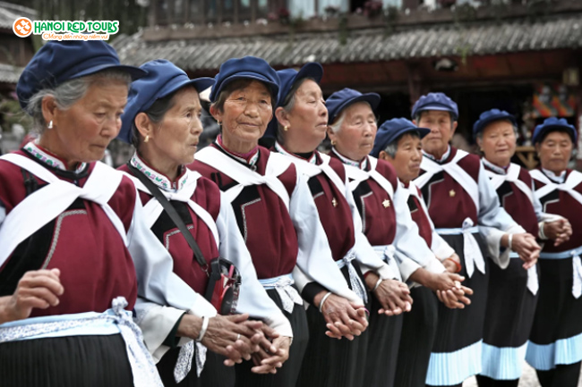Nét đẹp của cổ trấn này không chỉ đến từ phong cảnh nơi đây, mà còn toát ra từ chính cuộc sống bình dị của những người dân nơi đây. Bạn dễ àng bắt gặp hình ảnh những cụ già người Naxi đi dạo trên phố, đánh bài ven bờ sông hay múa điệu múa truyền thống. Mọi người ở đây,mỗi người là một hình ảnh thú vị và đậm chất Trung Hoa.